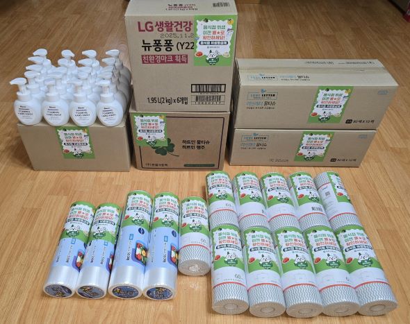 물티슈, 손세정제, 롤행주 등 도움이 되는 위생용품 제공