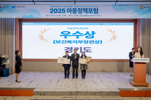 경기도는 8일 오후 강원특별자치도 원주시 오크밸리에서 열린 ‘2025년 제13회 아동정책포럼’에서 아동정책시행계획 추진실적 평가 우수상을 수상했다.