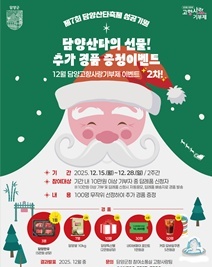 (전남=NSP통신) 김용재 기자 = 담양군이 연말을 맞아 오는 15일부터 28일까지 2주간 ‘담양산타의 선물! 고향사랑기부 추가 경품 증정 이벤트’를 실시한다.
