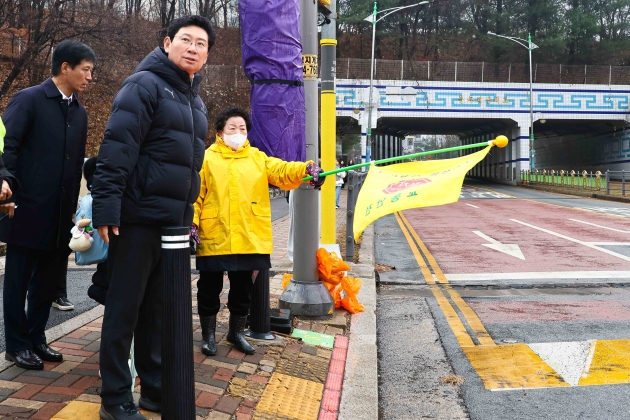 이 시장은 학생들이 안전하게 횡단보도를 건널 수 있도록 돕는 교통지도 봉사에 참여한 후 학교 관계자, 학부모들과 청덕초등학교 학생들이 이용하는 통학로를 살펴보고 안전한 환경을 조성하기 위한 방안을 논의했다.