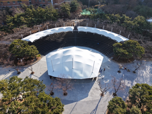 정비를 통해 기존 노후 무대는 디자인 가벽과 막구조 지붕 형태로 새롭게 조성돼 공연 시 발생하는 소음을 완화할 것으로 기대된다.