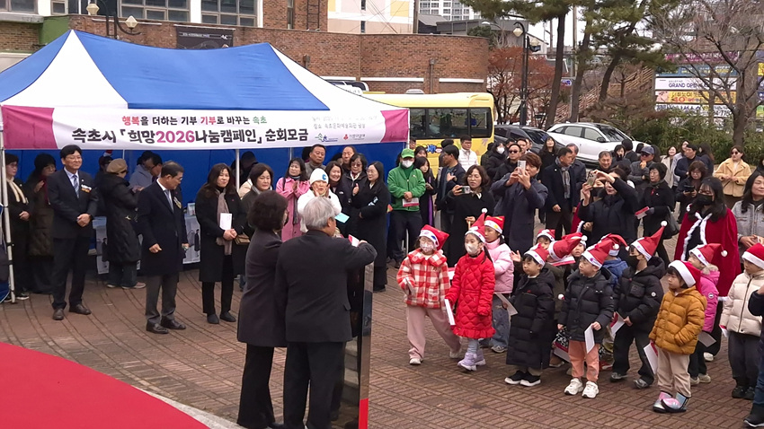 (강원=NSP통신) 조이호 기자 = 강원 속초시(시장 이병선)가 17일 속초시문화예술회관 야외광장에서 ‘희망2026 나눔 캠페인 순회모금 행사’를 열고 연말연시 나눔 문화 확산에 나섰다.