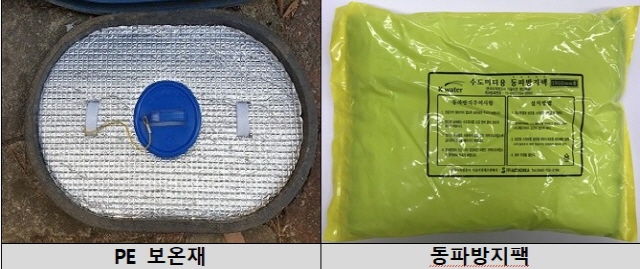 이번에 지급되는 PE보온재와 동파방지팩은 스티로폼 조각과 방습제를 비닐팩에 담아 밀봉한 형태로 수도계량기 위에 덮은 후 뚜껑을 닫기만 하면 간편하게 설치할 수 있다.