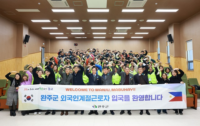 완주군은 17일 농업기술센터에서 필리핀 랄로시와 미나시에서 입국한 외국인 계절근로자 83명을 대상으로 환영식을 개최했다고 밝혔다.