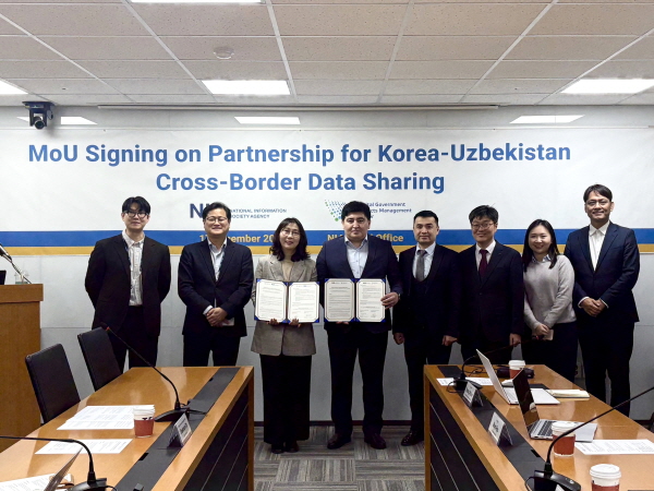 (경북=NSP통신) 김대원 기자 = 한국지능정보사회진흥원(원장 황종성, 이하 NIA)은 UN ESCAP(아시아 태평양 경제사회위원회) 참여하에 우즈베키스탄 디지털정부프로젝트관리청(DGPMC, Digital Government Project Management Center)과 신뢰 기반 데이터 협력 강화를 위한 업무협약(MoU)을 지난 17일 체결했다.