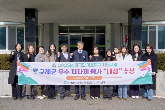 (전남=NSP통신) 김성철 기자 = 구례군은 보건복지부가 주관한 2025년 ‘전국민 마음투자 지원사업’지자체 평가에서‘대상’을 수상했다고 밝혔다.