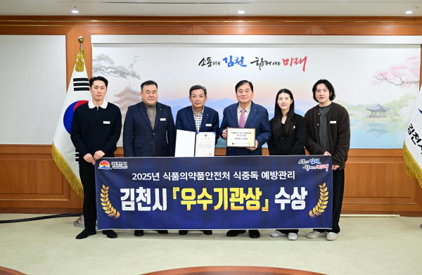 (경북=NSP통신) 김대원 기자 = 김천시는 식품의약품안전처에서 주관한 ‘식중독 예방 우수기관’ 표창과 경상북도에서 실시한 ‘2025년 공중위생사업 평가’ 우수상을 연이어 수상하며 식품안전 및 공중위생 분야 전반에서 탁월한 성과를 인정받았다.