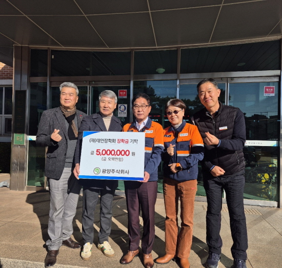 (전남=NSP통신) 김성철 기자 = 광양주식회사(대표 김명훈)는 지난 22일 지역사회의 교육 발전을 위해 태인장학회(이사장 김영조)에 장학금 500만 원을 기탁했다.