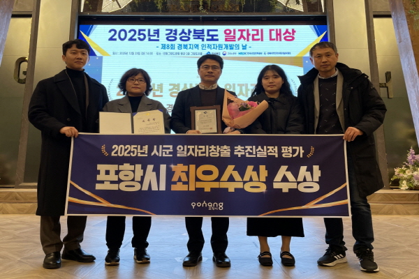 NSP통신-포항시가 지난 23일 안동그랜드호텔에서 열린 2025년 경상북도 일자리 대상 시·군 추진실적 평가에서 종합실적 부문 최우수상을 수상했다. (사진 = 포항시)