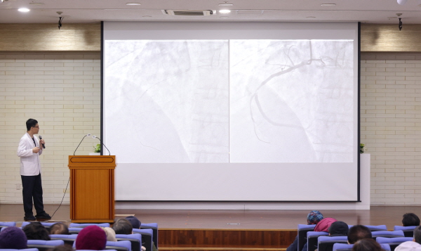 이날 김태진 과장은 협심증과 급성 심근경색증 등 일반 시민에게 다소 어려울 수 있는 의학 용어와 질환의 개념을 사진과 영상으로 이해하기 쉽게 설명했다.
