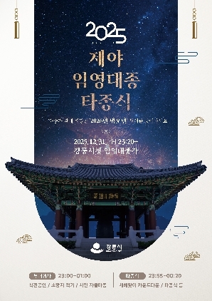 행사는 31일 오후 11시부터 시청 앞 임영대종각에서 진행된다. 농악과 주민자치 우수프로그램, 강릉시립합창단 공연으로 문을 열고 새해맞이 카운트다운과 임영대종 타종, 신년 메시지 낭독, 새해 퍼포먼스가 이어질 예정이다.