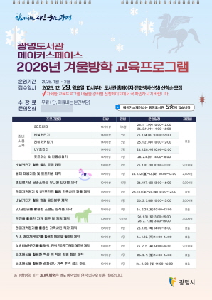 (경기=NSP통신) 김여울 기자 = 경기 광명시(시장 박승원) 광명도서관은 오는 29일부터 ‘메이커스페이스 2026년 겨울방학 교육 프로그램’ 참가자를 모집한다.