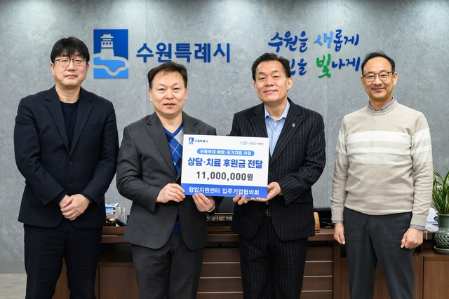(경기=NSP통신) 조현철 기자 = 경기 수원시(시장 이재준)에 30일 수원시 창업지원센터 입주기업협의회가 학대 피해아동 지원을 위한 후원금 1100만원을 전달했다.