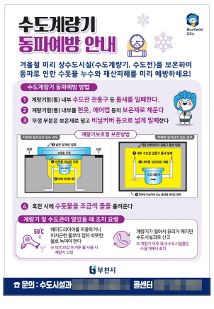 부천시 관계자는 “수도계량기 동파는 사전 예방이 무엇보다 중요한 만큼 시민의 관심과 참여가 필요하다”며 “시는 빈틈없는 대응체계를 유지해 동파로 인한 불편을 최소화하겠다”고 말했다.
