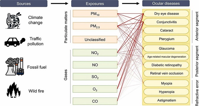그동안 대기오염이 각결막염, 건성안, 황반변성 등 다양한 안질환에 영향을 미친다는 연구 결과는 보고돼 왔으나 역학연구와 동물실험연구를 포괄해 체계적으로 정리한 연구는 없었으며 연구팀은 총 3324편의 문헌을 검토한 뒤 103편의 역학연구와 22편의 동물실험연구를 바탕으로 대기오염과 안질환의 연관성을 지도 형태로 표현했다.