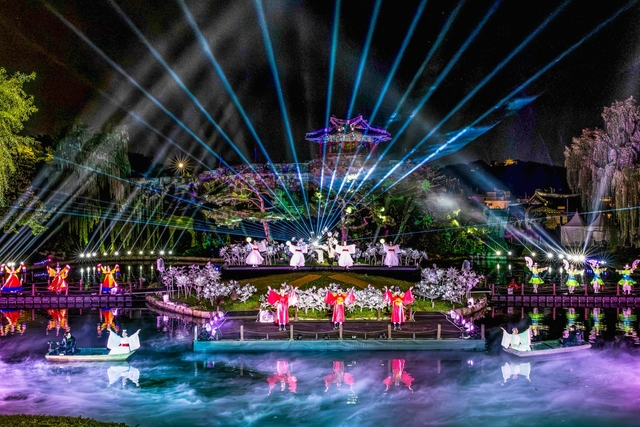 수원화성문화제 중 용연에서 수중 퍼포먼스를 선보이는 ‘선유몽’ 공연 모습. (사진 = 수원시)