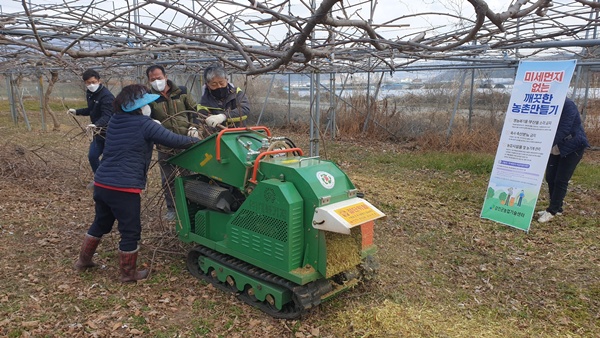 이번 사업은 영농부산물 파쇄지원단이 농가로 직접 찾아가 과수와 밭작물 재배 과정에서 발생하는 잔가지 등 영농부산물을 현장에서 무상으로 파쇄해 주는 방식으로 진행된다.