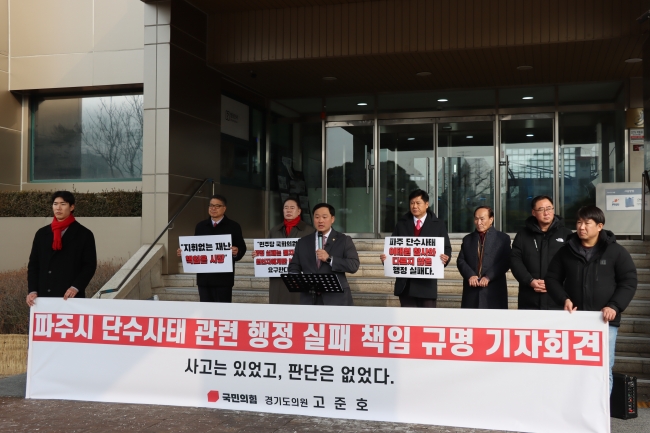 (경기=NSP통신) 김병관 기자 = 고준호 경기도의원(국민의힘, 파주1)은 15일 지난해 11월 14일 파주시 인구 41만명, 17만 세대가 단수를 겪은 사태에 대해 기자회견을 열었다.
