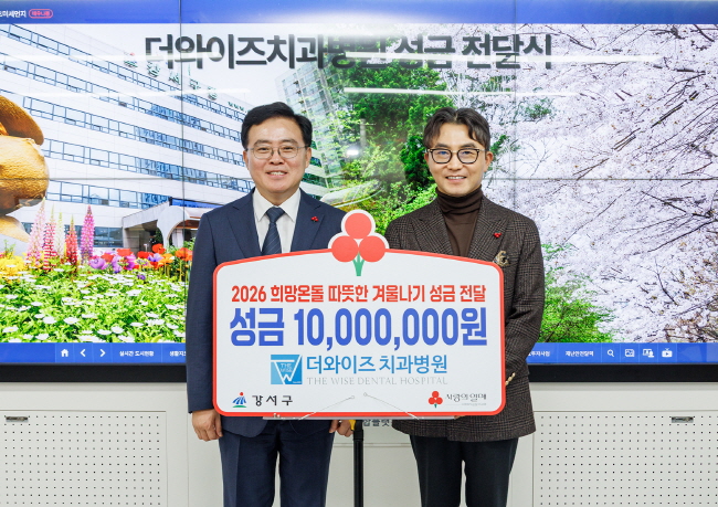 (서울=NSP통신) 박지영 기자 = 서울 강서구(구청장 진교훈)는 1월 16일 화곡동 더와이즈치과병원(대표원장 임세웅)으로부터 이웃돕기 성금 1000만 원을 전달받았다.
