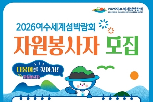 (전남=NSP통신) 서순곤 기자 = 여수시는 2026여수세계섬박람회를 함께 이끌어갈 자원봉사자 ‘다봉이’ 1200여 명을 오는 26일부터 2월 27일까지 한 달간 모집할 예정이다.