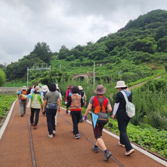 코리아둘레길 남파랑길 광양코스 걷고 있는 탐방객 (= 광양시청)