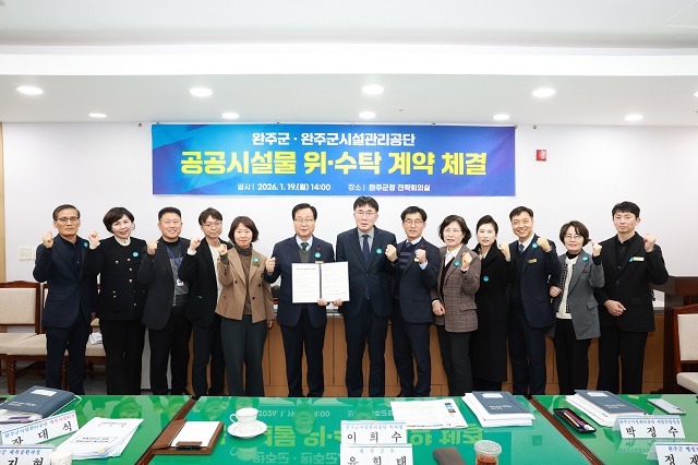 이날 체결식에는 유희태 군수와 소관 부서장, 이희수 완주군시설관리공단 이사장과 공단 팀장 등 10여 명이 참석했다. 행사에서는 공단의 2025년 운영 성과와 올해 운영 계획을 공유하고 위·수탁 계약서를 교환했다.