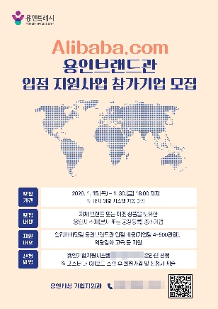 (경기=NSP통신) 김병관 기자 = 경기 용인특례시(시장 이상일)는 오는 30일까지 B2B(기업 간 거래) 플랫폼 알리바바닷컴 내 ‘용인브랜드관’(YoGo) 입점 참가기업을 모집한다.