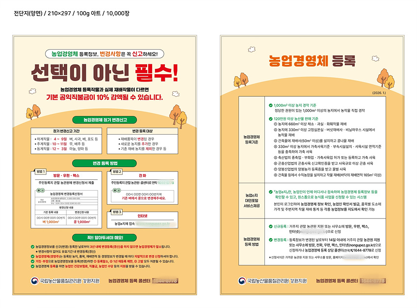 #강릉농관원 #국립농산물품질관리원 #홍찬호소장 #동계작물정기변경신고기간 #농업경영체