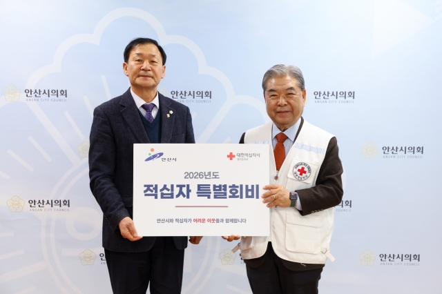 (경기=NSP통신) 김병관 기자 = 경기 안산시의회(의장 박태순)가 20일 ‘2026년 적십자 특별회비 전달식’을 갖고 대한적십자사 경기도지사에 특별회비를 전달했다.