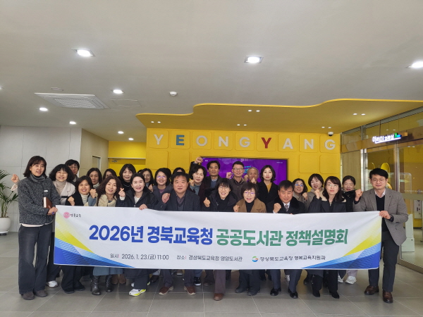 (경북=NSP통신) 조인호 기자 = 경상북도교육청(교육감 임종식)은 23일 신축 이전으로 새롭게 문을 연 경상북도교육청 영양도서관에서 공공도서관장 등 도서관 관계자 40명이 참석한 가운데 ‘2026년 경북교육청 공공도서관 정책설명회’를 개최했다고 밝혔다.