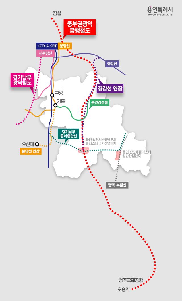 용인특례시에서는 처인구 모현·포곡읍, 시청 주변, 이동·남사읍에 조성 중인 ‘용인 첨단시스템반도체 클러스터 국가산업단지’를 통과해 청주공항과 KTX와 SRT가 정차하는 오송역을 연결하는 노선을 구상하고 있다.