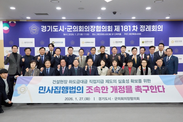 이에 경기도시·군의회의장협의회는 신속한 법제화를 통해 법적 불확실성을 해소해야 한다고 보고 ▲국회의 민사집행법 일부개정법률안 조속 통과 ▲정부의 하도급 대금 지급 가이드라인 즉각 마련 ▲국회·정부의 관련 법률 체계 정합성 개선 협력 등 3개 사항을 건의했다.