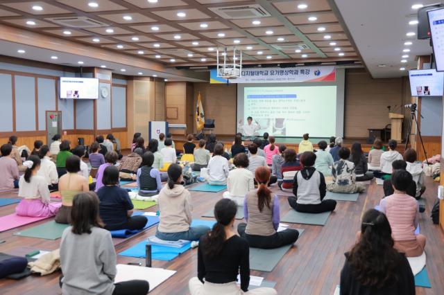 곽지혜 교수가 ‘비니요가를 통한 에너지요가 실습’ 주제로 특강을 하고 있다. (사진 = 원광디지털대)