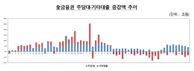 Household debts in the non-banking sector decreased by 2.6 trillion won (-2.5 trillion won) compared to January; ▲mutual savings banks recorded a 2.5 trillion won decrease; insurance firms a 0.5 trillion won, while ▲credit finance corporations saw a 400 billion won increase, and ▲savings bank, 100 billion won increase, respectively.