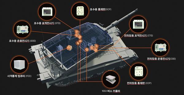 特に射撃統制コンピューターは砲塔内部の周辺装置と連動して▲砲・砲塔・照準鏡制御▲弾道計算▲自動追跡機能などを遂行し火力体系を統制、各種ミサイルに対する機敏な対応を通じて戦車の生存性を向上させる役割をする。