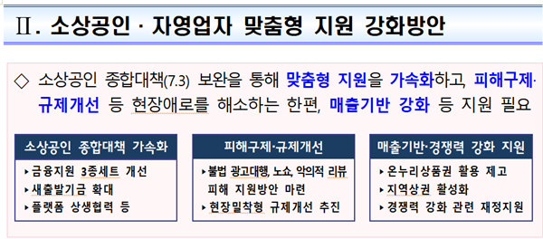 소공연은 “정부의 이번 방안은 그간 소상공인연합회가 지속적으로 건의해온 내용들이 대폭 반영됐다”고 긍정 평가했다.