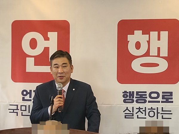 최승재 의원이 마포갑 사무소 개소식에서 인사말을 진행하고 있다. (사진 = 강은태 기자)