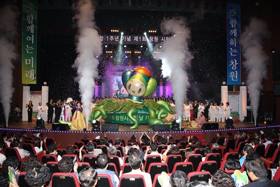 이날 기념식은 새로 제정된 ‘창원시민헌장’과 ‘시민의 노래’ 선포, 시정 유공시민 표창, 김황식 국무총리와 박재완 기획재정부장관을 비롯한 각계각층 시민들의 축하 영상메시지, 창원찬가 제창 순으로 진행됐다.