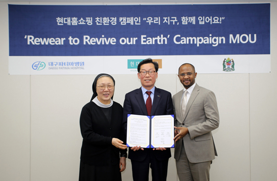 (서울=NSP통신) 이복현 기자 = 현대홈쇼핑이 주한 탄자니아대사관, 대구파티마병원과 아프리카 의류 기부 캠페인 ‘우리 지구, 함께 입어요’를 추진하기 위한 업무협약(MOU)을 체결했다고 밝혔다.