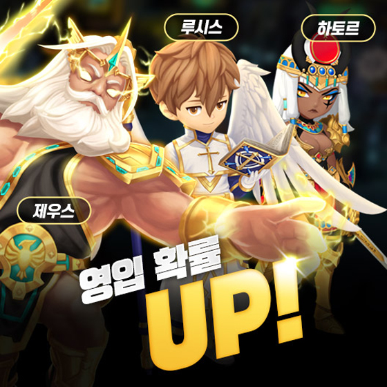 제우스의 등장을 기념해 다음달 4일까지 ‘영입 확률 업’ 이벤트가 열린다. 제우스 뿐만 아니라 루시스와 하토르 트레이너도 수월하게 영입할 수 있다.