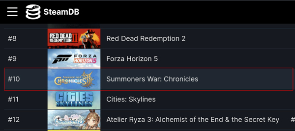 (서울=NSP통신) 이복현 기자 = 컴투스(대표 송재준, 이주환)의 소환형 RPG 서머너즈 워: 크로니클(이하 크로니클)이 글로벌 출시 2주 차 대규모 업데이트 후 PC게임 플랫폼 스팀의 전 세계 종합 매출 순위 10위에 오르며, 최고 순위 기록을 경신했다.