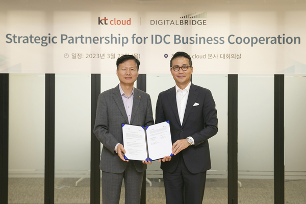 (서울=NSP통신) 이복현 기자 = kt클라우드(대표 윤동식)가 디지털브리지(DigitalBridge)와 ‘글로벌 IDC 사업 협력 전략적 파트너십(Strategic Partnership for IDC Business Cooperation)’를 체결했다.