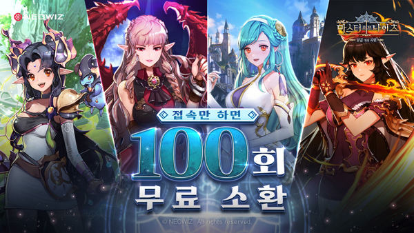 게임에 접속만 하면 신규 및 기존 이용자 관계없이 자동으로 소환권 제공이 시작되며, 24시간 동안 총 100장의 영웅 소환권을 획득할 수 있다.