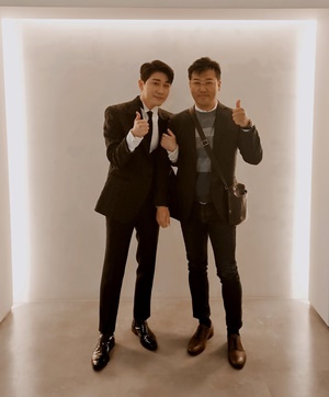 ▲‘막걸리 한잔’ 작곡가 류선우(오른쪽)와 가수 영탁(왼쪽) (사진 = 류선우 SNS)