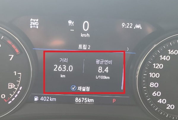 NSP통신-263.0km 주행 후 체크 한 캐딜락 XT4의 실제 연비 11.9km/L(8.4km/100L) 기록 (사진 = 강은태 기자)