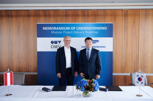 삼성엔지니어링은 지난 9일 오스트리아의 OMV(오엠비)와 모듈 기술의 프로젝트 적용 및 에너지 전환(Energy Transition) 분야 협력을 위한 업무협약(MOU)을 체결했다고 16일 밝혔다.