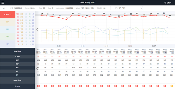 입원환자에게 발생하는 심정지는 일반적으로 호흡, 혈압, 맥박, 체온 등 생체신호의 변화에 따라 조기 예측이 가능하다.