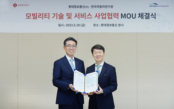 (서울=NSP통신) 이복현 기자 = 롯데정보통신이 한국자동차연구원과 지난 19일 롯데정보통신 본사 사옥에서 모빌리티 분야 협력체계 구축을 위한 업무협약(MOU)를 체결했다.