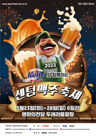 2023부산센텀맥주축제는 영화의 전당 두레라움 광장에서 5월 23일부터 28일까지 6일간 매일 오후 6시부터 10시까지 4시간 동안 진행될 예정이다.