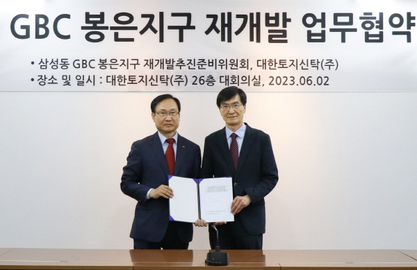 대한토지신탁(대표 박종철)은 지난 2일 ‘삼성동 GBC 봉은지구 재개발 추진준비위원회’와 재개발 사업 추진을 위한 업무협약을 맺었다고 5일 밝혔다.